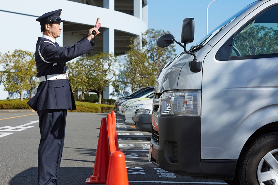 ショッピングセンターや大型店舗、イベント時の臨時駐車場、人気店などの駐車場警備を行います。駐車場におけるスムースな誘導は、安全面はもちろんですが、誘導効率化における入場者数の増加にも繋がります。警備員全員が密にコミュニケーションを取り、安全にストレスなく駐車できるよう警備いたします。